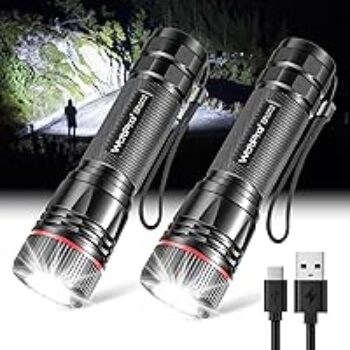 This 2-pack of WdtPro high lumens rechargeable mini tactical flashlights is designed to provide powerful lighting for various situations. With their compact size and bright output, they are ideal for home use, outdoor activities, or emergencies.