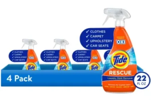 This 4-pack of Tide Ultra Oxi All-Fabric Laundry Stain Remover Spray is designed to tackle tough stains on various fabrics. Each bottle contains 22 oz of unscented formula, making it suitable for sensitive users.