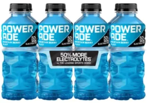 This pack includes eight 20 Fl Oz bottles of Powerade in the refreshing Mountain Berry Blast flavor, designed to replenish electrolytes during physical activity.