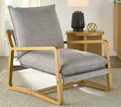 This stylish accent chair combines Scandinavian design with functionality, making it a great addition to any room. It is constructed with a durable solid wood frame and features comfortable 100% linen fabric with reversible cushions for added versatility.