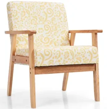 Costway Modern Accent Upholstered Lounge Chair in Yellow Floral for $39