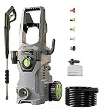 This pressure washer is ideal for tackling tough grime with its powerful 2000 PSI output and comes with four nozzles for versatile cleaning options.