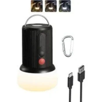 This rechargeable camping lantern is designed for outdoor use, providing bright illumination with its 300 lumens output and a long-lasting 6000mAh battery. Ideal for camping trips, it includes a convenient hook for easy hanging.