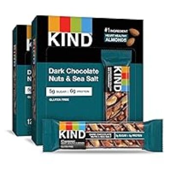 Enjoy a delicious and nutritious snack with KIND Nut Bars, combining the rich flavors of dark chocolate, almonds, and sea salt.