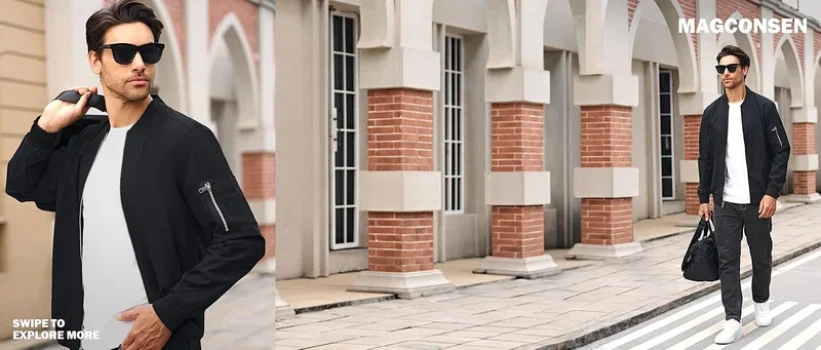 Men’s Lightweight Windbreaker Bomber Jacket with 5 Pockets for $19.99
