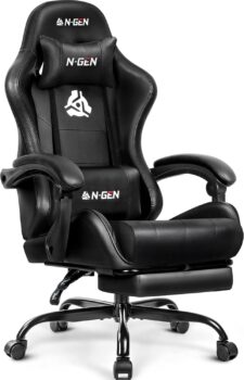 N-GEN GAMING Video Gaming Chair with Footrest Lumbar Support for Home Office High Back Recliner Height Adjustable Ergonomic Comfy Leather Computer Desk Chair (Black) – $89.78 [ 36% off ]
