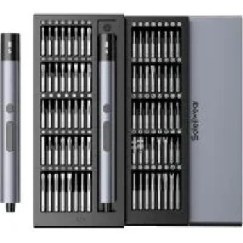This compact electric screwdriver set includes 80 different bits, making it versatile for electronics, appliances, and more. With its ergonomic design and rechargeable battery, it provides convenience and efficiency for your repair needs.