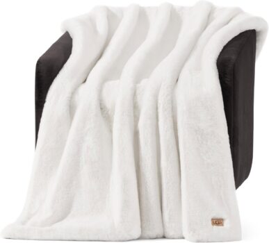 UGG Euphoria Faux Fur Throw Blanket, Warm Fluffy Throw for Couch or Bed, Luxury Bedroom Decor, Fluffy Blankets, Machine Washable, 50-inch x 70-inch, White Snow $55 [ 48% off ]