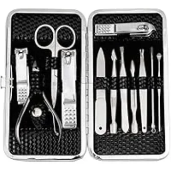 This 12-piece manicure and pedicure kit is designed for women and includes a variety of essential tools for nail care.